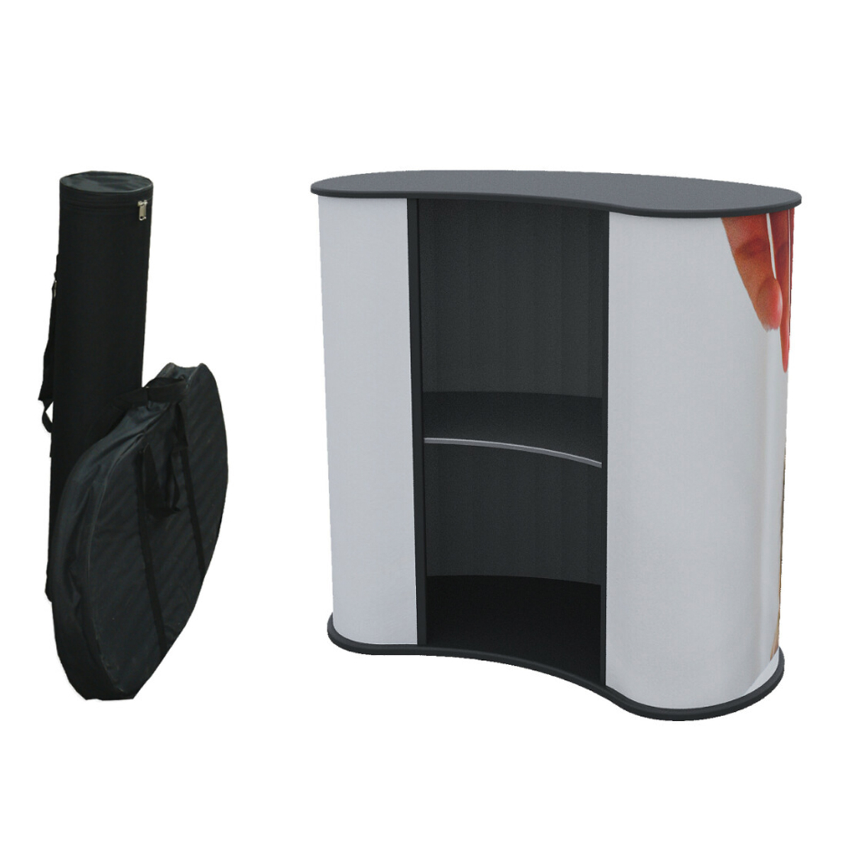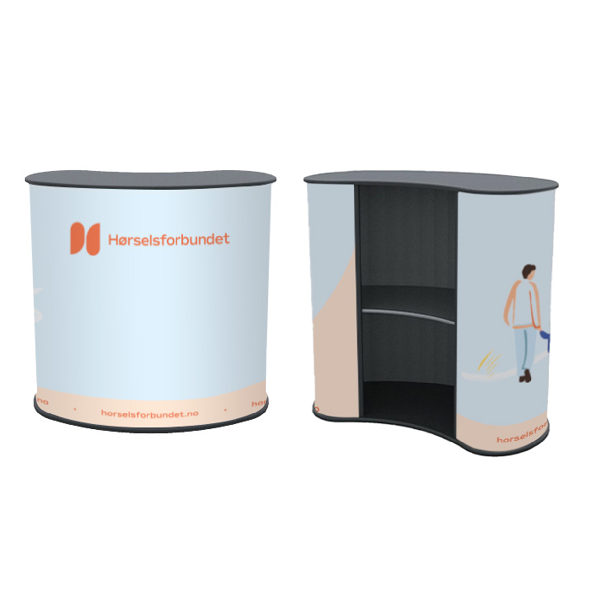 Et enkelt og stabilt messebord, som du smidig pakker opp og ned.